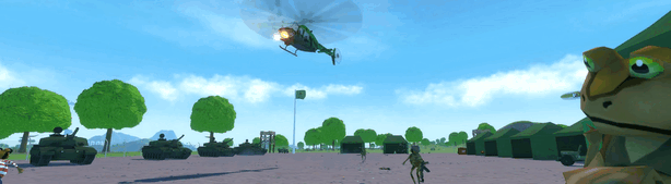 Discover environmental landmarks around Swindonshire like the Mountain, Swindon-on-Sea and an island with aggressive inhabitants! Get to the church and ring in a zombie apocalypse! Approach the Army base and get into battle with elite, fighting frogs! Find train tracks and stations to ride the Steam Trains! (Or you could derail them). Travel to Farm and meet the farmers!