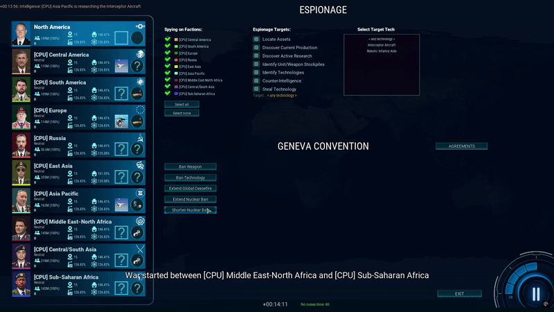 从冷战早期到近未来创新,科技发展跨越多个时代,包括隐形军舰和太空武器系统。修改后的外交系统引入新的谋略层级,玩家将可以达成研究协议,进行停战谈判,并交易己方占领的领土。覆盖全球的外交措施(如禁止特定武器的国际条约)为游戏提供了重塑全球冲突进程的全新战略可能性。