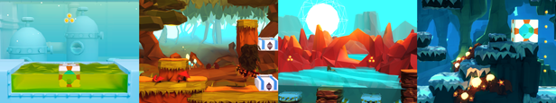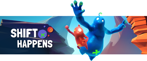 The two jello jelly creatures Bismo and Plom got connected in a tragic yet funny accident and thus can exchange their size and abilities at will. Welcome to the world of Shift Happens - the only game out there which doesn't take a closer look at the body mass index and where players are actually forced to work togehter (and occasionally stab each other in the back).