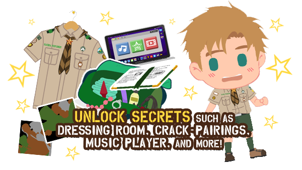 Finally, once you've finished the game, unlock the secret room where you can dress up the characters, view bonus images, unlock crack-pairings, listen to in-game music, and more! Hint: Those tents look awful roomy!