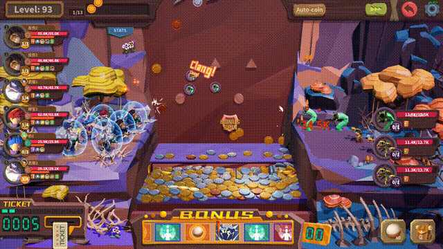 During battles, the coins collected from the Coin Pusher will be distributed to your heroes. They’ll only fight for you once they get their fair share!