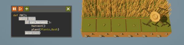 Programming is done in a simple language similar to Python. The beginning of the game is designed to teach you all the basic programming concepts you will need by introducing them one at a time.