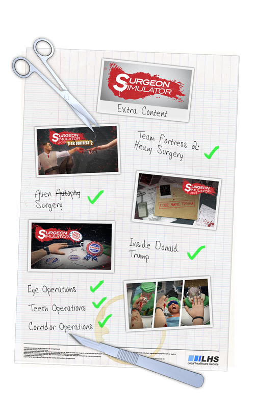 Taking on the role of Nigel Burke, a would-be surgeon with a penchant for non-conventional tools, perform critical procedures on patients including The Heavy from TF2, an alien with a truly one-of-a-kind anatomical structure, and the 45th President of the United States of America - yes, Mr Donald J Trump, himself!