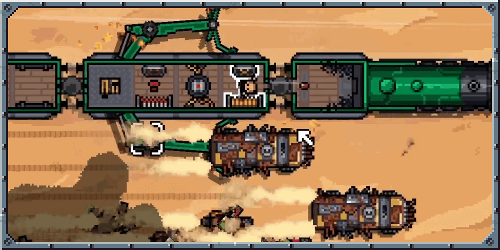 Modules are the foundation of your Build. Fill up your Wagons with various modules each giving you unique abilities. There are Modules for every type of Wastelander. Go full offense by building up an arsenal of cannons, rocket launchers and turrets, obliterating everything in your path. Take the more defensive approach and create an indestructible machine built around disabling enemies, deflecting shots and extinguishing fires, keeping your train healthy and running even through the harshest conditions. Or experiment with other combinations, perhaps go with a speedy train that gets you to your destination faster or even create a completely autonomous system that does all the work for you. Your slots are limited, so choose wisely.